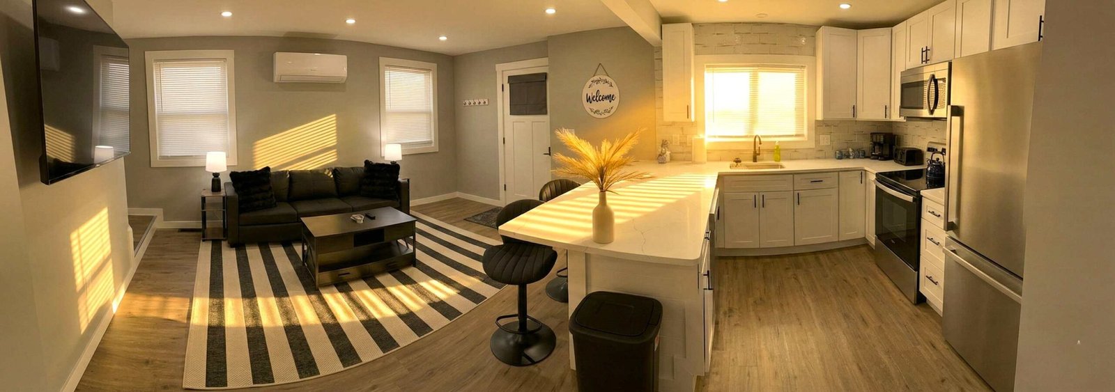 The Space Step inside to a beautifully renovated, open-concept home designed for comfort and convenience. The main floor flows together seamlessly, creating a perfect space for connection and relaxation. Main Floor Features: • Living Area: Unwind on a large reclining sofa next to a cozy (decorative) fireplace. • Kitchen: A fully equipped, modern kitchen with stainless steel appliances and a large central island with seating. • Dining Area: Seamlessly connected to the kitchen and living room for shared meals. • Dedicated Workspace: A quiet desk area provides a productive space for remote work or business needs. • Conveniences: A powder room and a full laundry room are also located on this floor. Upstairs Bedrooms & Bathrooms: • Main Bedroom: A spacious retreat featuring a king-size bed, a 65″ 4K TV (Roku BYO streaming service), two closets, and a private four-piece ensuite bathroom with a separate soaking tub and a walk-in shower. • Bedroom 2: A comfortable room with a queen-size bed, a 55″ 4K TV (Roku BYO streaming service), and a closet. • Bedroom 3: Another cozy room with a queen-size bed, a 55″ 4K TV (Roku BYO streaming service), and a closet. Access Guests will have full and private access to the entire home, including all bedrooms, bathrooms, the kitchen, living areas, and laundry facilities. • Private Entrance: Enjoy the convenience and security of a private entrance with a keypad deadbolt. • Self Check-in: Your unique access code will be provided on the day of your arrival for a seamless self-check-in experience. Neighborhood The Holloway Terrace is a solid blue collar neighborhood first established in 1916 and is in the middle of a re-development boom. Mixed in with the original houses are a bunch of new construction homes, re-development started in the early 2000’s and has steadily continued. Depending on which way you are traveling the exit from I-295 is the first once crossing the Delaware Memorial Bridge or the last exit before crossing the bridge. Unfortunately due to the close proximity of I-295 you will drive past several low budget motels when entering the neighborhood (if following GPS). I always recommend that guests use the Route 9 Library & Innovation Center as the GPS address, then use the house address (it is .5 miles away from the Library). The people staying at the low budget hotels never seem to come into the neighborhood, it’s just not pleasant driving past them and can be alarming if you are not expecting it. Transit The house has parking, Uber and Lyft are readily available and it is a .5 mile walk to the closest bus station (New Castle Ave @ Hillview Ave Stop ID: 1776) Notes To ensure a secure and pleasant stay for all our guests, please take note of the following: • Guest Verification: We require a government-issued photo ID and your agreement to our terms and conditions before check-in is finalized. • Security Deposit: Please be aware that a security deposit of $1,500 may be charged at the host’s discretion as part of our standard security procedure. InteractionWithGuests We prioritize your privacy and comfort. While we won’t be present during your stay, we are always available to answer questions or provide assistance. Please feel free to reach out to us via the messaging app or by phone at any time. Overview Escape to our freshly renovated New Castle home, perfect for 6 guests! This modern retreat is ideal for families, groups, or business travelers. Enjoy an open-concept living space with a fireplace, a fully equipped kitchen, and a dedicated workspace. Located minutes from historic Old New Castle and the Wilmington Riverfront. Your perfect home away from home awaits! (We require ID, signed agreement and a $1,500 security deposit may be charged at the host’s discretion) HouseRules *Tampering with security devices, such as video doorbells and security cameras , is a violation of our rental agreement. Guests will be cancelled and not refunded for tampering or disabling the cameras. * Absolutely no shoes in the house! Stilettos and high heels are the nemesis of hardwood floors, but any shoe can have a small rock trapped in the tread and do serious damage to hardwood floors. Repairs to the floors are expensive, starting at around $2,500!!! *Maximum of 6 guests allowed in the property at any time *Guests not on the reservation must be cleared in writing via the Airbnb app prior to them entering the property. NO unauthorized guest allowed, failure to comply will result in termination of the reservation without refund and a $150 fine per guest over the amount shown on the reservation. * Please no glitter in the house, it is exceedingly difficult to remove from the surfaces and will result in an extra cleaning charge ($500-$3,500) *PLEASE DO NOT SMOKE ANYTHING IN THE HOUSE , IF YOU SMOKE PLEASE DO OUTSIDE IN THE DRIVEWAY WITH ALL THE DOORS AND WINDOWS CLOSED- WE PAY A MINIMUM OF $2,500 FOR SMOKE REMEDIATION THAT WILL BE CHARGED TO YOU *Please do not park on the street, if you must please park on the house side of the street. *No gatherings or parties, please be aware of the other homes in the neighborhood and be a considerate neighbor *Please wash, dry and put away all dishes before checking out * take trash and recycling to the can on the other side of the garage, nothing loose in the can, everything must be bagged
